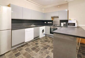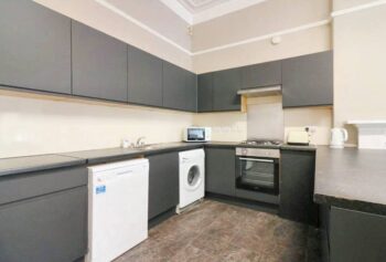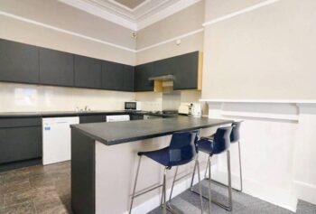 Featuring 2 lounge/kitchens, 1 on the ground and lower level, 10 double bedrooms and 2 bathrooms. The flat consists of 2 levels, providing ample living space. Situated on Kersland Street, the flat is within walking distance of the University of Glasgow.